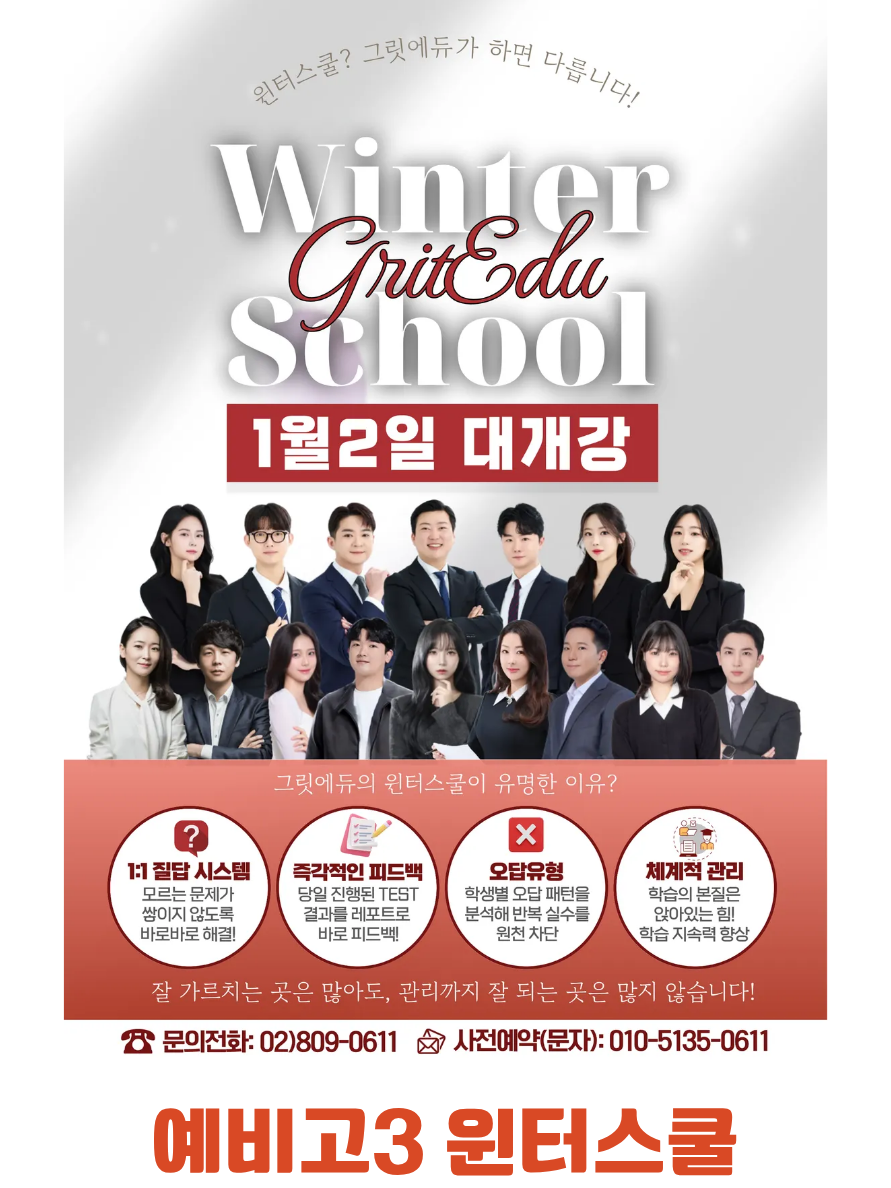 그릿에듀의 초강력 윈터스쿨 !!!!!!!! (1/2~3/2)