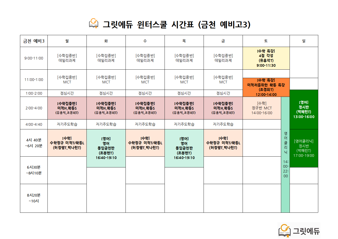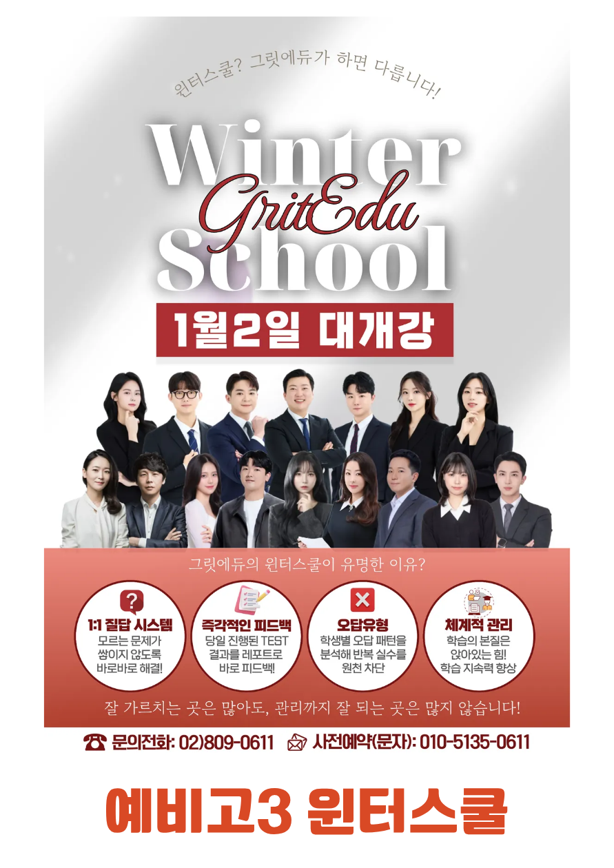 그릿에듀의 초강력 윈터스쿨 !!!!!!!! (1/2~3/2)